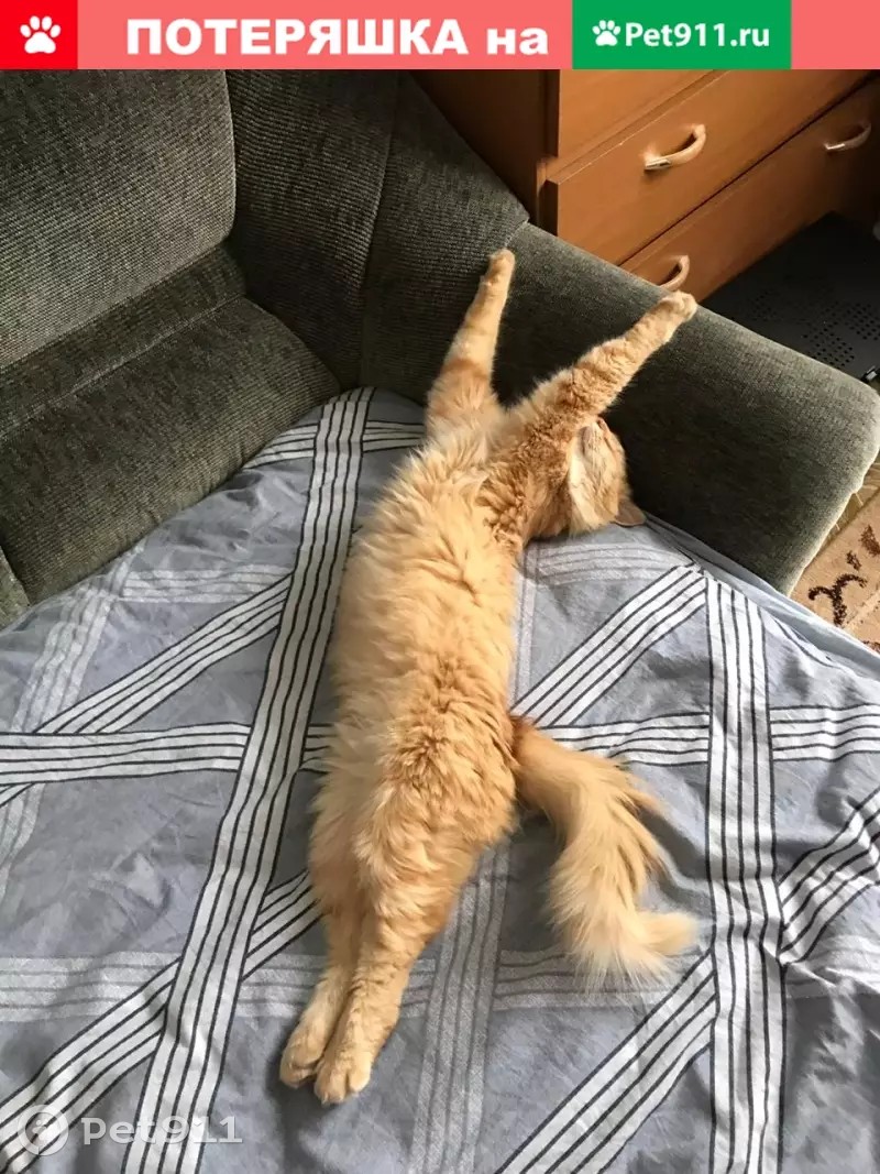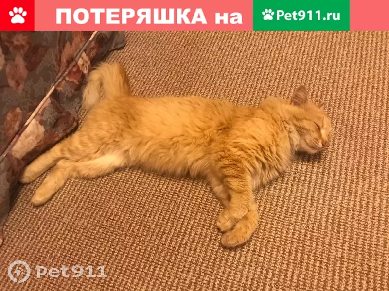 Потерялся пушистый рыжий кот по имени Арбуз. Коту примерно 1,5 года. не кастрирован. Возможно, на нем еще есть красный ошейник с гильзой, но не факт.