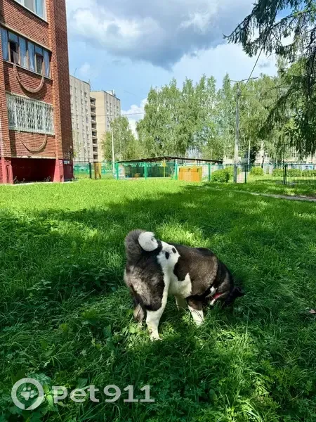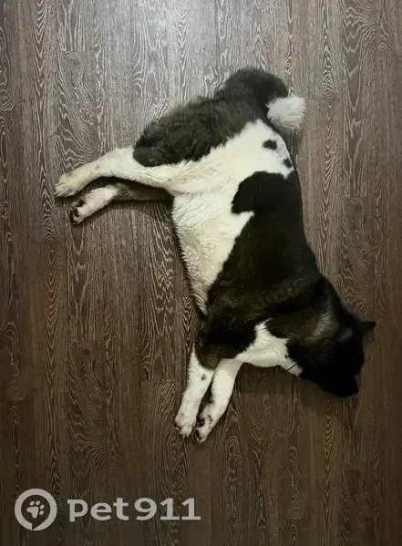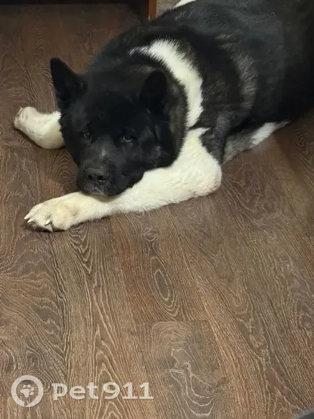 Порода: Американская акита Кличка: Люци Пол: кобель Вес: около 60 кг Окрас черно-белый, есть характерное пятно на боку. Красный ошейник. Клеймо на животе Потерялся в Южном районе, ул. Тургенева, 10.