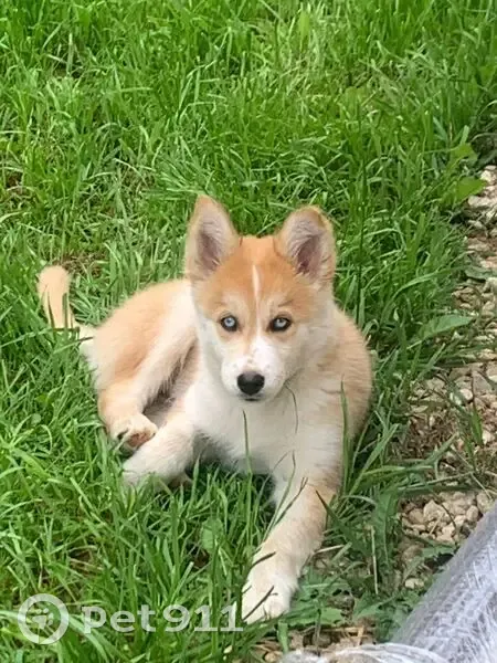 рыженькая, голубоглазая девочка, с белым пузом и носиком, с не очень острыми ушками было в ошейнике боится машин очень игривая и дружелюбная порода лайки помесь с хаски, выпустили ее погулять и не вернулась , потерялась в районе барыбино ,КП фишера
