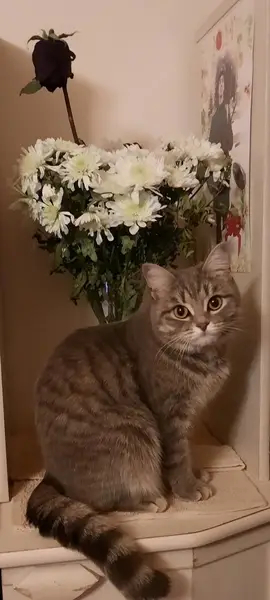 Коту года 2, судя по зубам, чистый без блох, ушного клеща нет. Подушки лап без мозолей и потёртостей, из этого следует, что кот проживал в квартире. Толстый и ухоженный. Очень ласковый и ручной. Всю ночь орал в подъезде у нас на 9 м этаже, днём на первом сидел. Я, пока, забрал к себе.