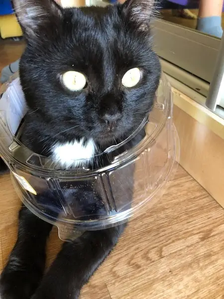 Чёрный. Домашний (блох нет). Чистый, ласковый, общительный.