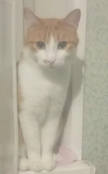 Окрас бело-рыжий, дворняжка, по внешнему осмотру кастрированный мальчик, на вид около 6-7, может 8-ми месяцев. Котёнок пришёл по козырьку магазина 2 этажа дома со стороны магазина Пятёрочка.