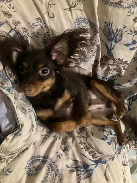 Найден тойчик, на трассе за Аргаяшом. Был без ошейника, сводили в клинику пес здоров, примерный возраст 8-10 лет не кастрирован.