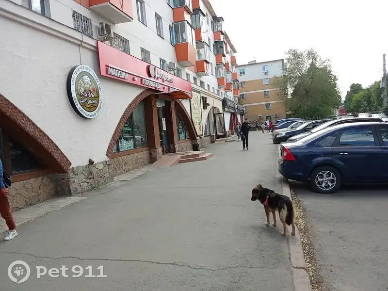 Обнаружил собаку, видимо сорвавшуюся с поводка. Ходила по улице и искала хозяина. Несколько раз вставала в позу ожидания у магазина Добрыня (Кирова 3). В руки не давалась. Поспрашивал собачников внутри двора и людей в магазине - могут ли знать хозяина. Хозяина определить не удалось. Вынужден был оставить место. Собаку с собой забрать или удерживать на месте никак не мог