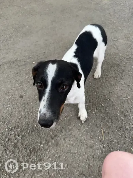 Белая, с черными и коричневыми пятнами. Девочка, маленькая. По породе не понятно, как будто помесь. К сожалению, не удалось не придержать, не уходит от подъезда