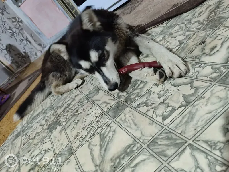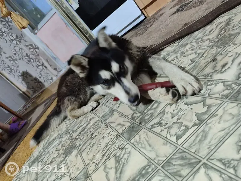 Девочка, окрас как у хаски, но возможно помесь, в породах не разбираюсь, послушная, игривая, понимает некоторые команды откликается на кличку Луна, возможно настоящее имя схожее , очень жду хозяев собачки