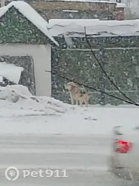 Пятнистая собака, в ошейнике. Сидит в частном секторе, агрессивна к другим кобелям, на людей спокойно реагирует. Жадно кушал корм, по частному сектору поспрашивали - никто его не знает Нашли соседи, помогаю информационно