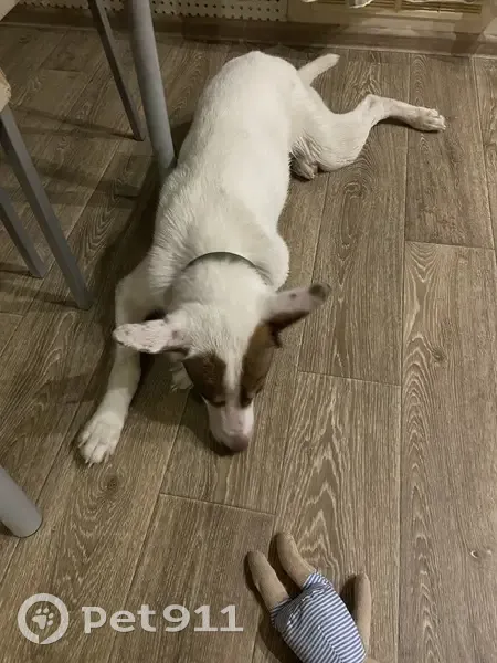 Белый окрас с коричневой маской на мордочке. В роду возможно были лайки. Пришел к Бизнес-центру 74 примерно в 10.30 утра. Собаку пустили внутрь, но он периодически выбегал, искал кого-то. Около 15.00 пес ехал в автобусе №2 в сторону Чурилово (зашел на остановке Профилакторий по лесопарковой) Ошейника нет, но следы есть. Забрала на передержку. Ветеринар сказал, что пес потерялся недавно, т. К. Достаточно чистенький, ухоженный, контактный. Возможно кастрирован, либо крипторх.