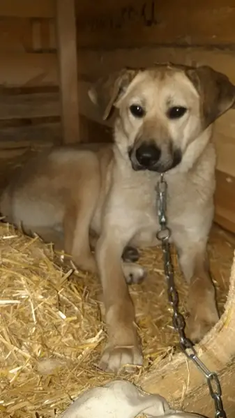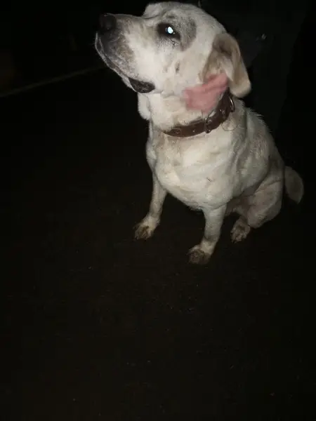 Собачка , смесь лабрадора, видно что домашняя , бегает вокруг дома потерянная . Есть след от ошейника