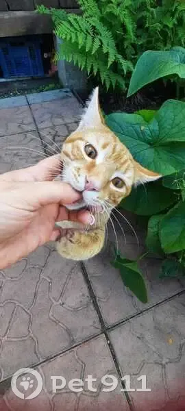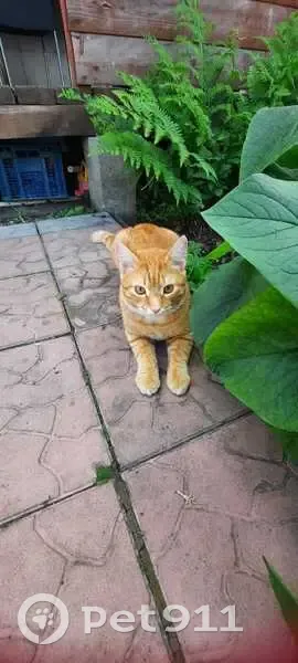 Рыжий, в полоску. Глаза такие же рыжие. Короткошерстный. Молодой, 7 мес. Недавно кастрирован. На момент пропажи под хвостом ещё была зеленка. Потерялся в снт любитель 1. На имя откликается.