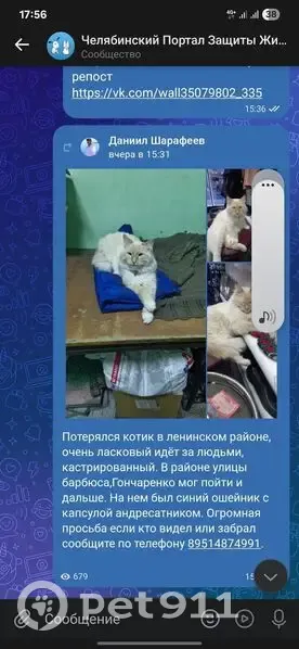 Объединено с объявлением rl1045015. Причина-дублирование информации. Описание дублирующего объявления: Vk. Com/wall35079802_335. Очень нужна любая информация последний раз его уже видели в районе Вагнера. Если кто видел или забрал просим сообщите по телефону 89514874991. #потерянные