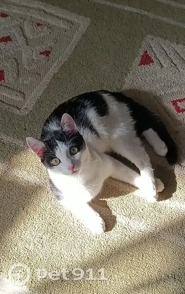 Спрыгнул с балкона дома Братьев Кашириных, 101 Приметы: зовут Инки, возраст –примерно 4-5 месяцев, сверху черный, снизу белый; хвост полностью черный, на лбу переход цвета в виде стрелы; внутренняя сторона лап белая с черными пятнами; светлый носик, глаза серо-зеленого цвета.
