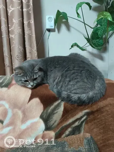 Серая кошка, откликается только на имя. Живет в своем доме, далеко никогда не уходила, вчера разместили пост с кошкой, находилась возле стадиона на ул. Кузнецова, очень похожа на нашу