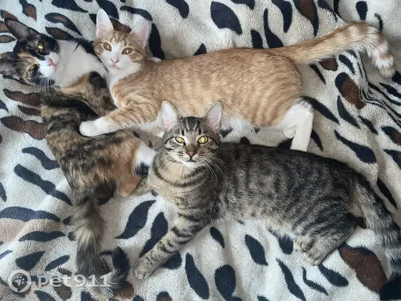 Одна Левая Задняя Лапка Рыжая С Полоску,Вся Кошка с Розовыми Подушечками ,вся Бело-Серую-Рыжую-Черную Раскраску ,белые и бровки и Усики ,Носик С Губками Розовые