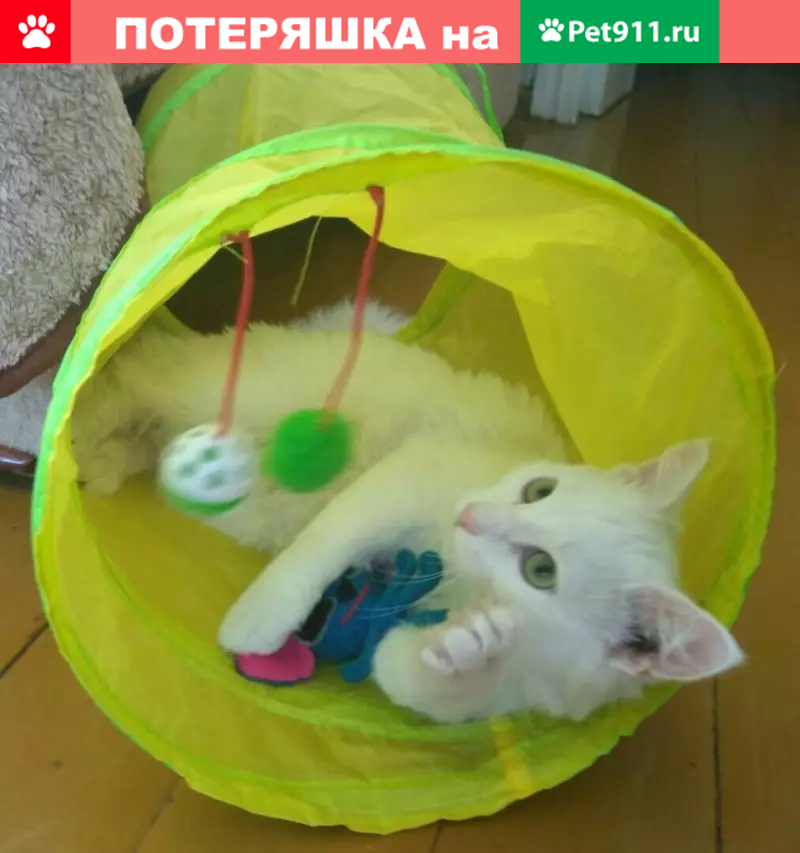 Потерялся белый кот! Был в клетчатом красно-белом ошейнике с номером телефона и кличкой (возможно снял). Шерсть на холке и на хвосте длинная, Глаза зелёно-желтые, Из особых примет - сломанный хвост на конце. Кот очень ласковый, не агрессивный, сам тянется к людям. Потерялся в районе МФЦ (Комарова, 39)