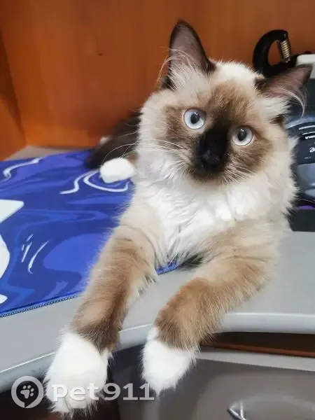 Выпала с 2 этажа 16 марта в 21.30. Балкон выходит на проезжую часть. Окрас светлая, мордочка от лба до носа коричневая, пушистая,очень пугливая но ласковая,порода больше похожа на Бирмаскую. Кличка Мишелька, так же отзывается на Мармышуля или Мишелька Вермишелька. Кошке 8-9 месяц. На улице не гуляла, домашняя.