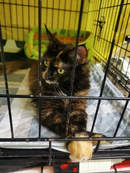 Кошка девочка 3 года,окрас черепаховый,после операции на животе с попоной и бинтами . Выпрыгнула из переноски около подъезда и убежала,поиск в след за ней результаты не дал...