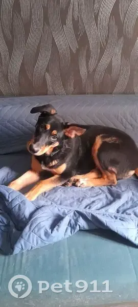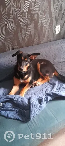 Одно ухо стоит, второе нет. Среднего размера. Возрасть примерно 10 месяцев. В голубом ошейнике. Не контактная. Боится людей , собак. Возможно бегает в районе улицы Болейко и Заячего острова.