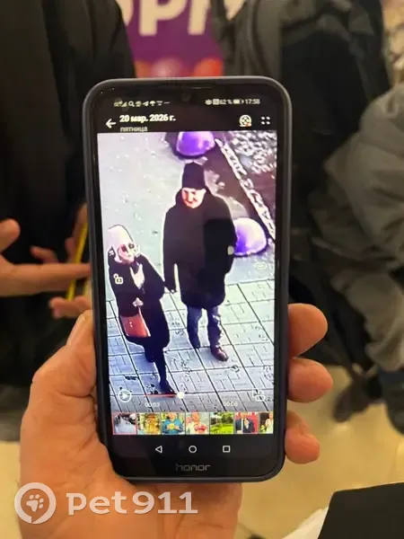 Наша собачка шоколадная, на ней была одета щлейка розовым цветом. Ее подобрали молодой человек и девушка
