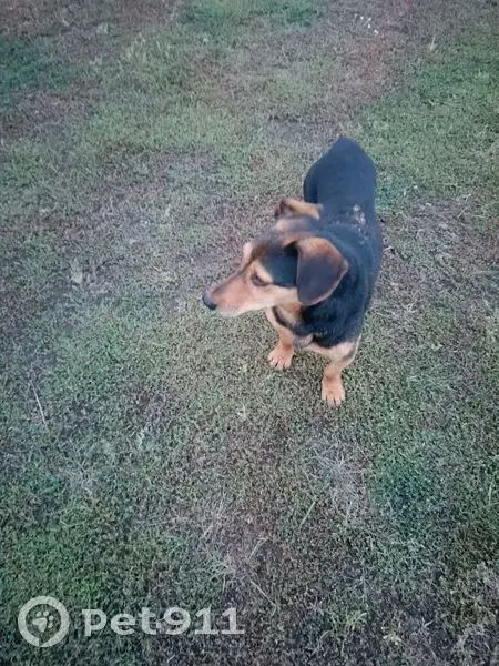Короткие лапы, длинное туловище как у таксы, но крупнее. Похож не породу Альпийская таксообразная гончая. На шее в первые дни был ошейник с колокольчикои, сейчас бегает без него, видимо потерял. Гуляет в с. Солнце