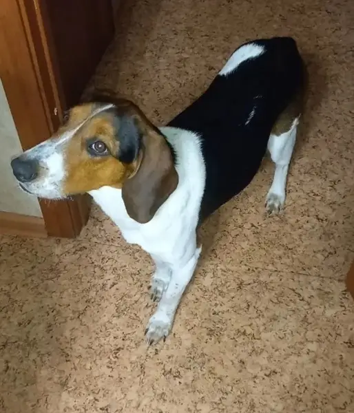 В 22 часа в лесу в районе с.Кундравы. Чебаркульский район Челябинской области нашлась собака (сука). Охотно прыгнула в машину, но клеймо пока посмотреть не даёт, отстраняется.
