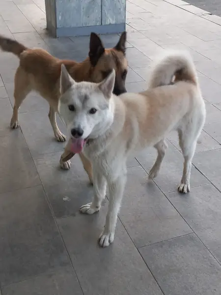 Собака с ошейником у школы в Златоусте, Челябинская область