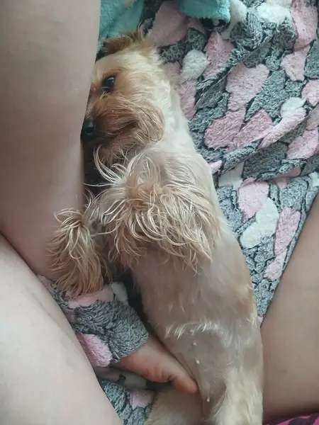 Йоркский трелер не знаю сколько лет ,нашла на улице сад Электрометалурге,02,06.23 днём