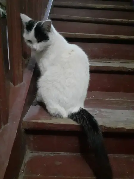 Белый кот, черный хвост и пятнышки на голове и бортах1 год
