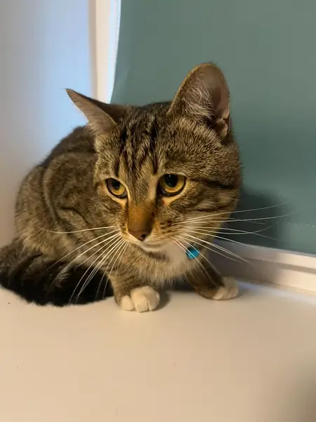 Был в ярко-оранжевой шлейке, возможно скинул её. Полосатый, очень добрый и пугливый. Любит, чтобы чесали попу и за ушком. Одно ушко отморожено, второе откусано, нет одного когтях на задней лапе, примерно 8 лет. До этого жил на улице в деревне, вряд-ли знал шумные города, поэтому может испугаться всего.