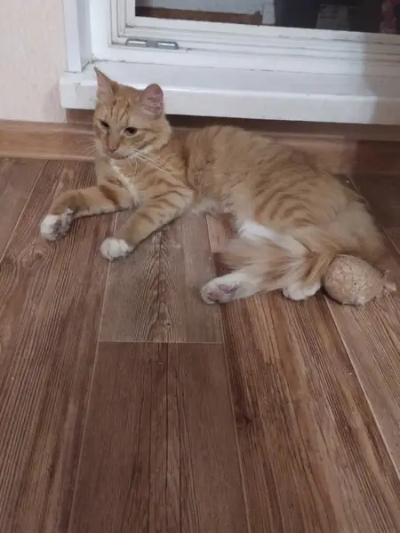 Рыжий с белым. Возможно выпрыгнул в окно, 1 этаж