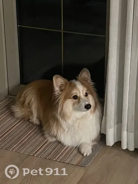 Рыжий с белым, пушистый корги флаффи. Пугливый, но добрый. На контакт не очень хорошо идёт. Испугался салютов и убежал. Где-то ходит скорее всего в районе деревень Циково, Юрьевец или близлежащих, совсем рядом с городом Череповец