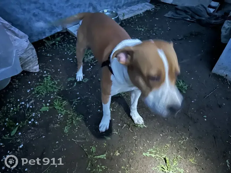 Найдена собака, стаффордширский терьер, очень контактный, ухоженный , упитанный , тянется к мужчинам больше , абсолютно дружелюбный , был найден в лесу в районе деревни Черная Грязь, Калужская область Жуковский район. На шее видны отметены , две точки (видно на фото). Сразу тянется к машине и пытается залезть .