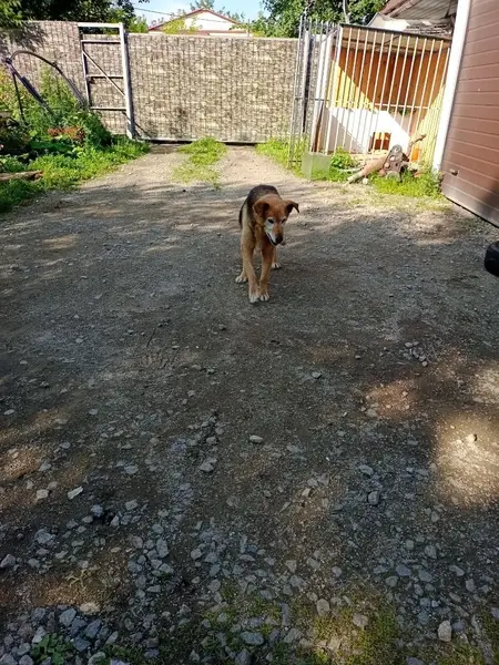 На вид русская гончая. Живет на соседнем заброшенном участке. Село Черноусово, 57 км от Екатеринбурга. Пес очень добрый, хочет играть, по возрасту +-1 год.