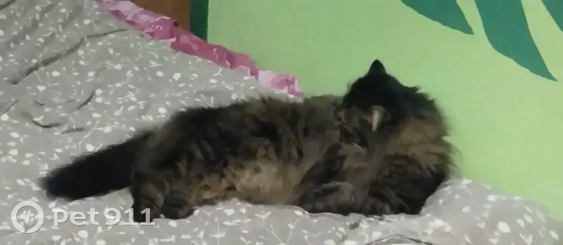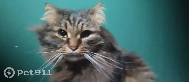 Путятий упал с 3 этажа испугался дворовой собаки и убежал в сторону заброшенного дома,находящегося во дворе. Либо он там, либо он пролез под забором и побежал дальше. Шерстка в основном серого оттенка: от темного до светлого, нос рыжий, усы белые, глаза желто-зеленые. Он крупный и лохматый