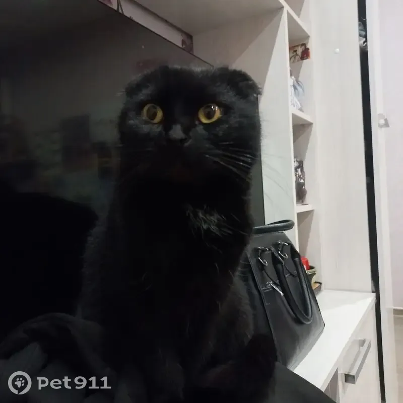 Чёрная вислоухая шотландка. 5 лет. Стерилизованная. Кошка регулярно ходила на улицу и возвращалась домой, но в начале месяца ушла и не возвращается... Искала в районе Курчатова, Линчевского и Чапаева, но нигде не нашлась...