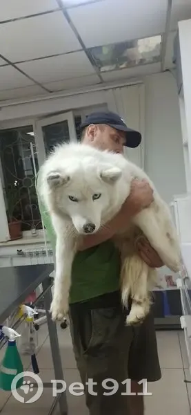 Окрас белый,глаза ярко голубые, очень добрая, пугливая. Ищем хозяина или новый дом. Возраст примерно 2 года, вес 18 кг.
