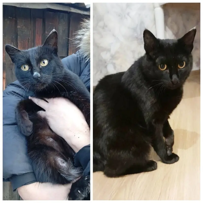 Нашли котёнка, на вид 3-4 месяца, чёрная кошечка. Пока поселили в гараже Ищем прежних или новых хозяев. Себе оставить не можем, т. К в квартире уже 2 кошки и собака алабай, не приняли её.
