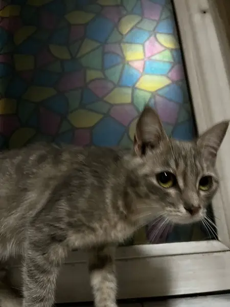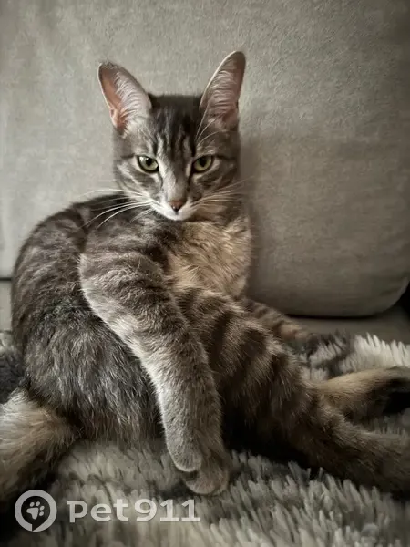 Окрас: светло серый Выражены полоски Цвет глаз: зеленый Одно ушко, короче второго Игривая, спокойная Трусливая, боится улицы и незнакомых людей. Пропала 25 июля Выпрыгнула из окна 1 этажа Просьба!!! Кто видел, позвоните по телефону 89243841198