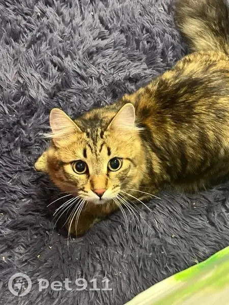 Кот, коричнево- рыжеватый, полосатый. Выпрыгнул с балкона. По словам детей, они видели как мужчина взял и ушел. На шее есть небольшие замятины шерсти от ошейника.