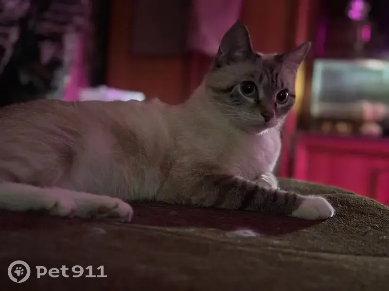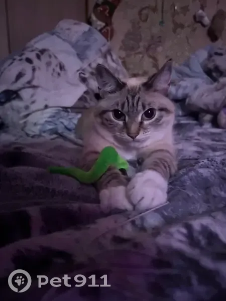 Потерялась кошка тайской породы,белая с черными полосками на мордочке и коричневыми на лапках. Хвост черный в полосочку,глаза голубые. Людей боится. Пропала в сосновом бору в районе вышки за объездной трассой (на самом верху сопки). Могла побежать вниз, в сторону дороги.
