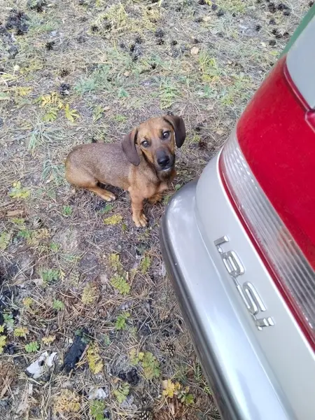 Окрас коричневый, по спинке волной на месте шарма растёт шерсть с проседью
