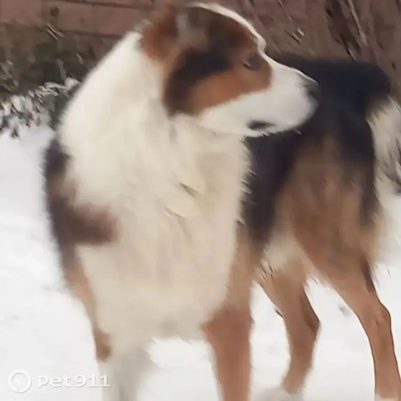 Пес без ошейника.Осторожный, добрый,может в машину залезть.Купированы уши и хвост.Пес трехшерстный.Одна половина головы белая другая рыжая,красивая белая грудка.