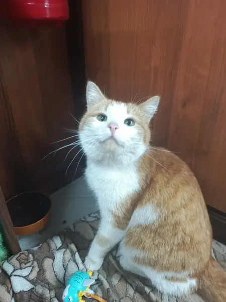 Спрыгнул с балкона второго этажа, котик не маленький , возраст около 4ох,окрас бело-рыжий, кострированный, левое ухо немного подрезаное, закруглёное, а не острое как правое, и ещё когда мурлыкает он как будто хрипит