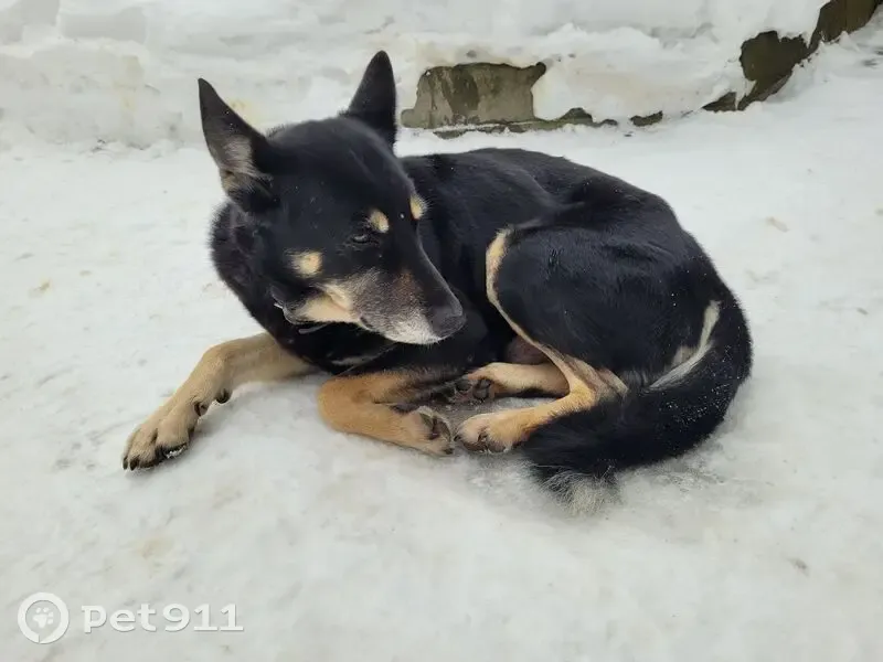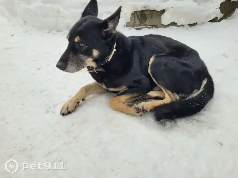 Кобель. Метис овчарки (?) Думаю, в возрасте, мордочка немного седая. Окрас чёрный с рыжими пятнами. Сидит на дороге у ворот частного дома уже несколько дней. На шее коричневый кожаный ошейник и белый от блох. Пугливый, подходишь, сразу встаёт и уходит. Худой.
