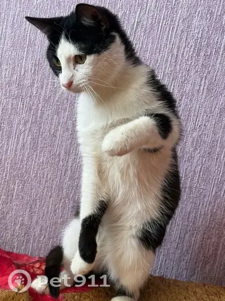 Черно белый окрас , зовут принц , в поведение тактильный и хорошо отзывается на имя(на передней левой лапе есть большое пятно , прям на подушечке ) .. Помогите нам пожалуйста его найти , гарантируем денежное вознаграждение