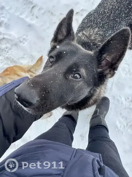 На завод в декабре прибилась молодая собака. Похожа на бельгийскую овчарку, окрас черный с подпалинами. Очень добрая.