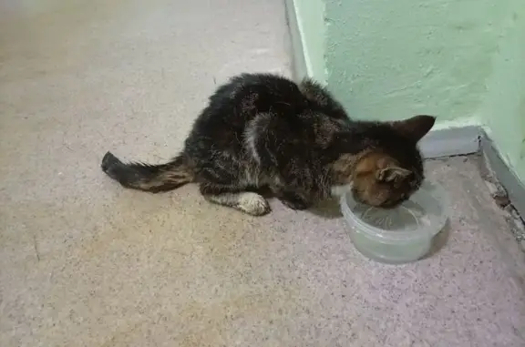 Окрас кошки черно-коричневая с рыжим, на шее небольшое белое пятнышко. Особая примета: торчит язычок. Есть вероятность, что упала с балкона и убежала в неизвестном направлении.