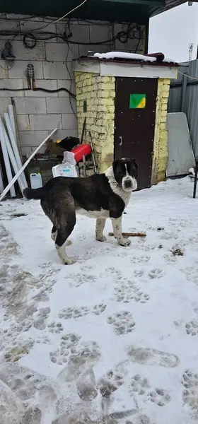 В п.Красное Знамя (поселок расположен рядом с Коробовкой), Грязинский район, Липецкой области, в районе д. 9в по ул.Лесная 29.12.25 замечена собака, похожая на Алабая. Окрас бело черный.