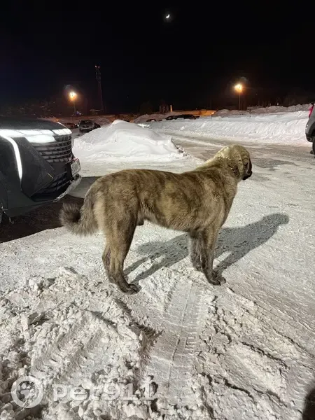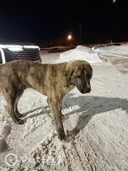 Собака крупной породы. Похожа на породистую. Появилась в комплексе 2 дня назад со слов работников. На шее ошейник без каких либо обозначений. Идет к людям спокойно, видно что ищет своего человека, домашняя