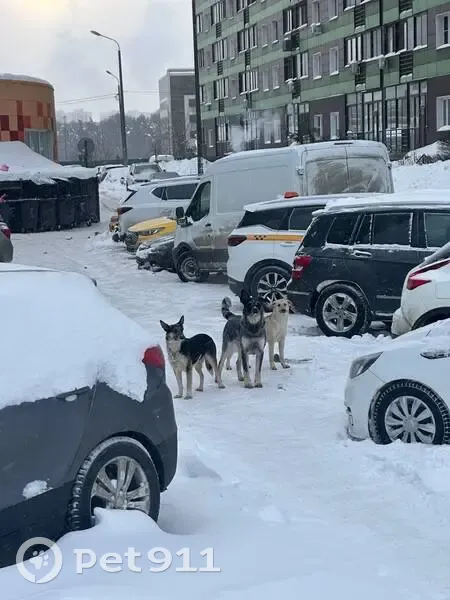 Найдена собака, кобель, серо - бежевый, мраморный, пятнистый, тигровый, полосатый хвост, длинный хвост, колечком, правое ухо стоит, левое ухо лежит. Бежевое пятно на шее, бежевый подбородок. Лапы серо-бежевые. Металлический, железный ошейник. Две другие собаки живут у нас на стройке, вдруг их тоже ищут. Серый в центре новенький.